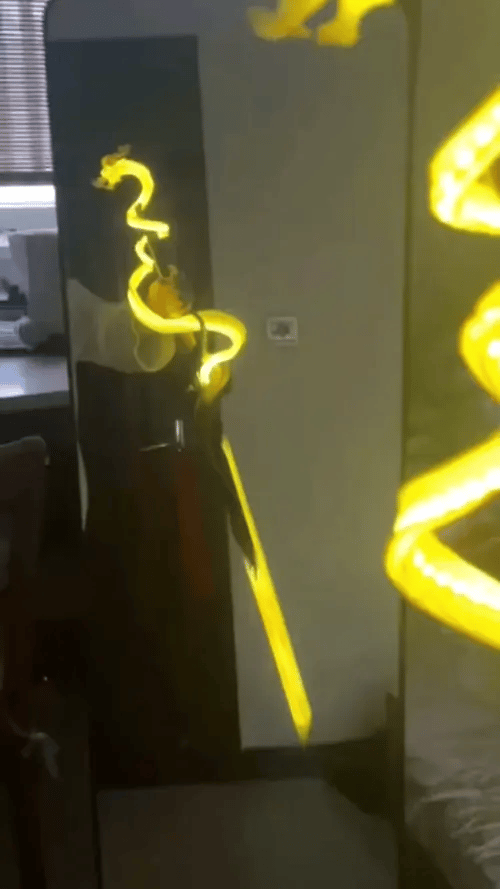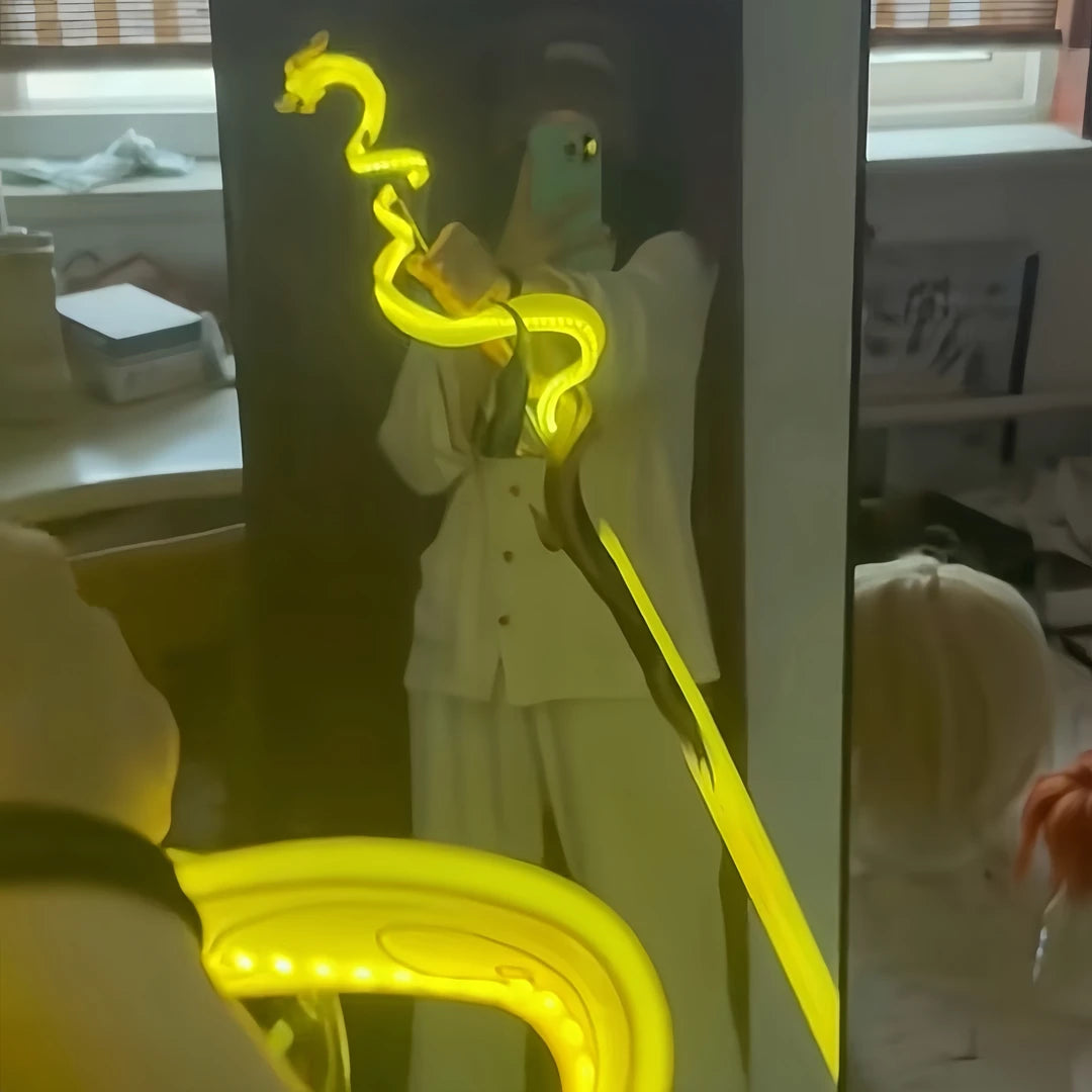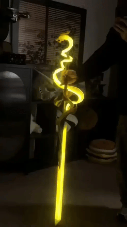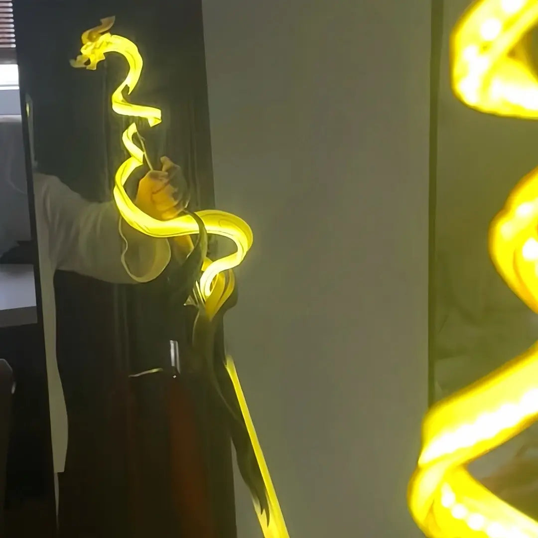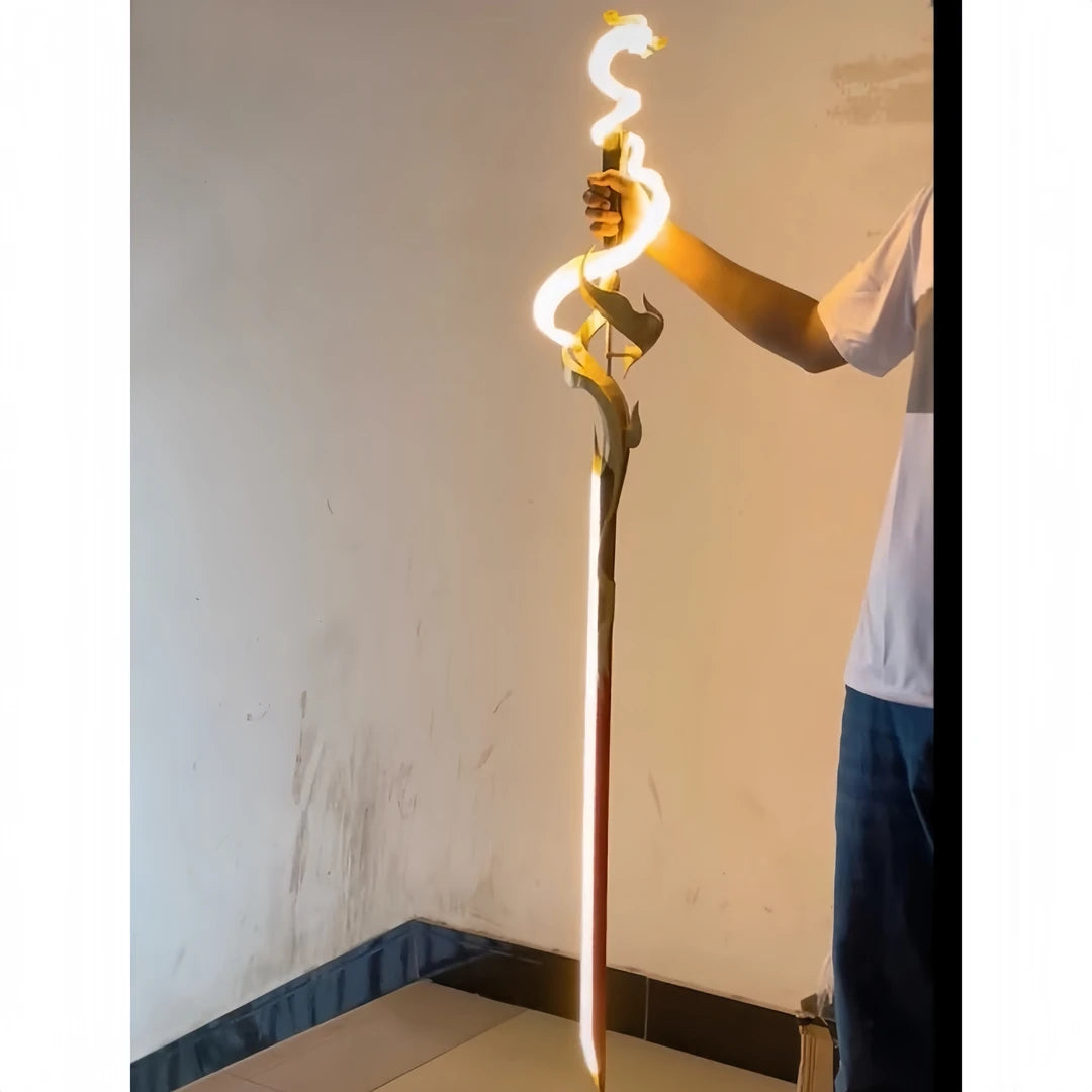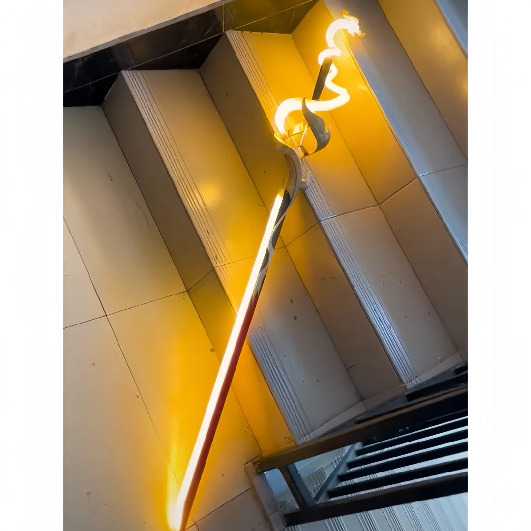 When you ignite the core, the entire 1.1m blade erupts into neon fury. It doesn't just reflect light—it becomes the light source of the entire room.